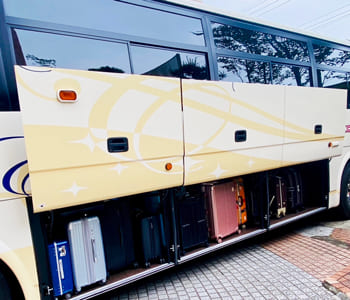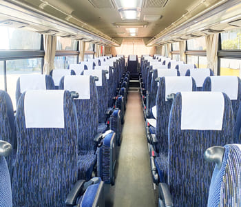 当社の観光バスは快適な座席と豊富な設備でお客様をお迎えします。広々としたトランクルームは荷物の収納に便利。 テレビやエアコン完備で快適な旅をサポート。清潔な内装と視界良好な窓からの景色をお楽しみください。